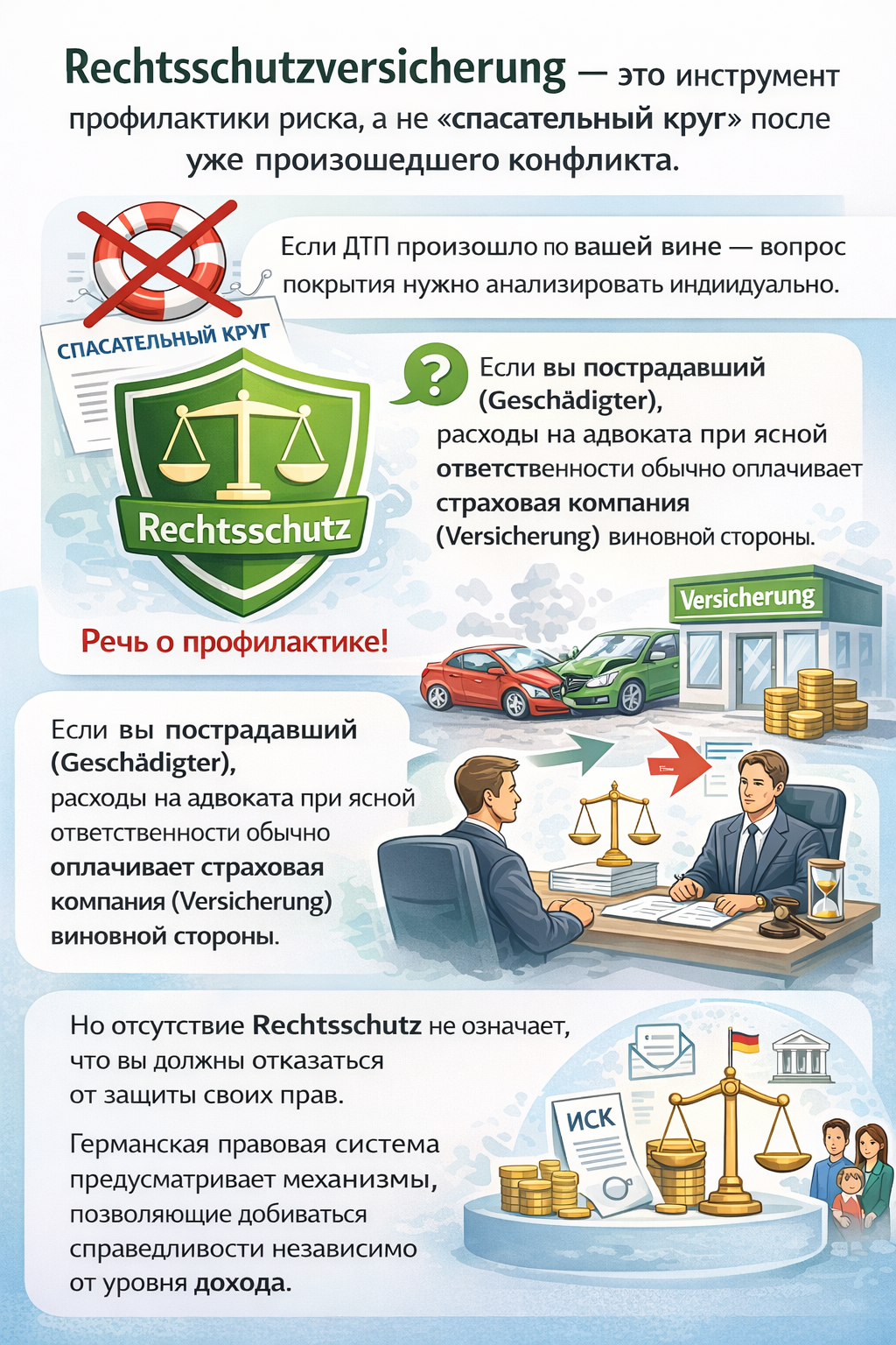 Rechtsschutzversicherung — это инструмент профилактики риска, а не «спасательный круг» после уже произошедшего конфликта.